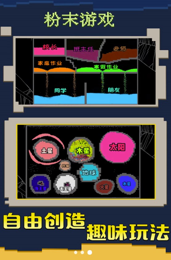 1、游戏包含了很多物理现象,加入了粉末粒子,形成化学反应;