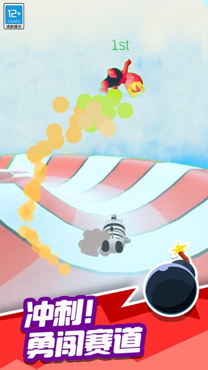 2、竞速模式包含单人计时赛与8人实时对战,玩家需合理利用赛道中的加速道具与近道设计争夺冠军宝座。