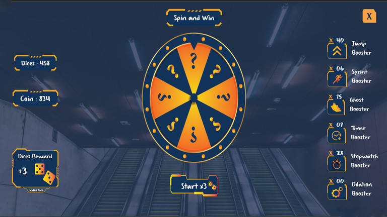 2、控制角色在51秒内爬上楼梯,注意看上方金币和骰子数量。
