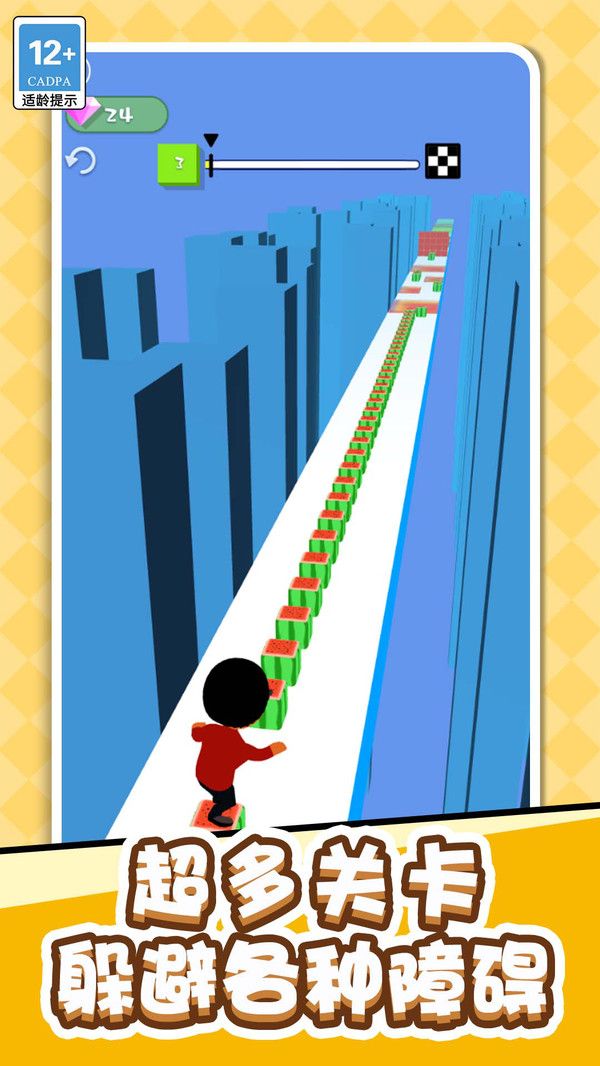 2、带来激情的跑酷之旅,站立在木板上面不断前进;