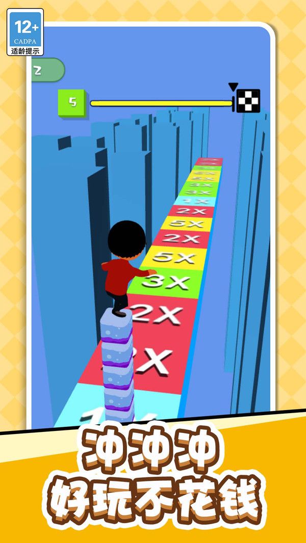 2、堆积木板,在各个跑道上闯关,快速前进;